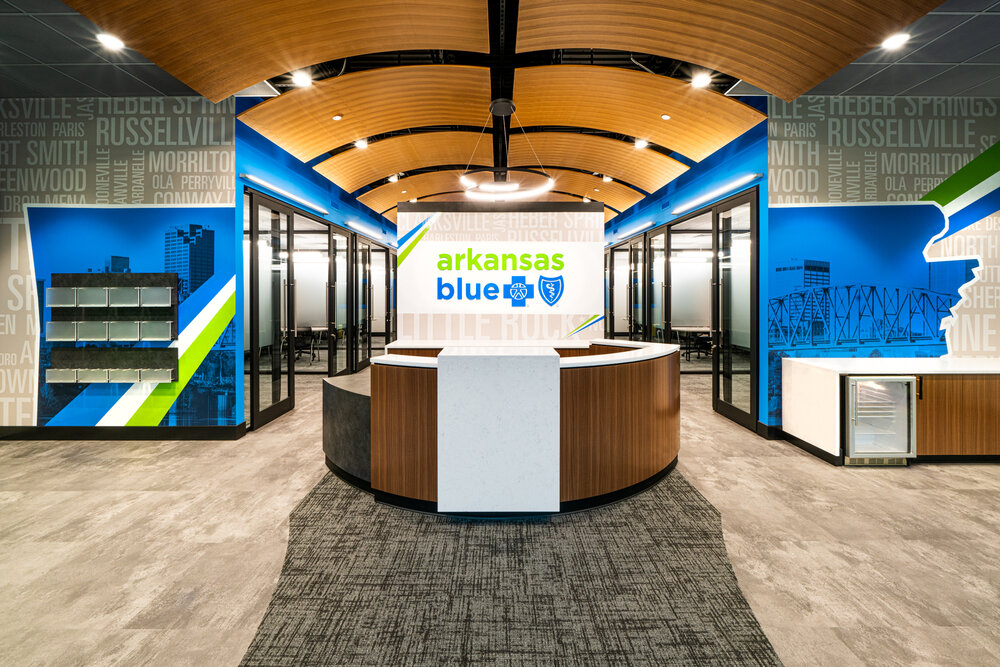 The featured project was designed for the BCBS retail space. The firm provided its interior remodels, flexible spaces, and integrated glass walls. The firm’s team also designed several meeting spaces and work areas.