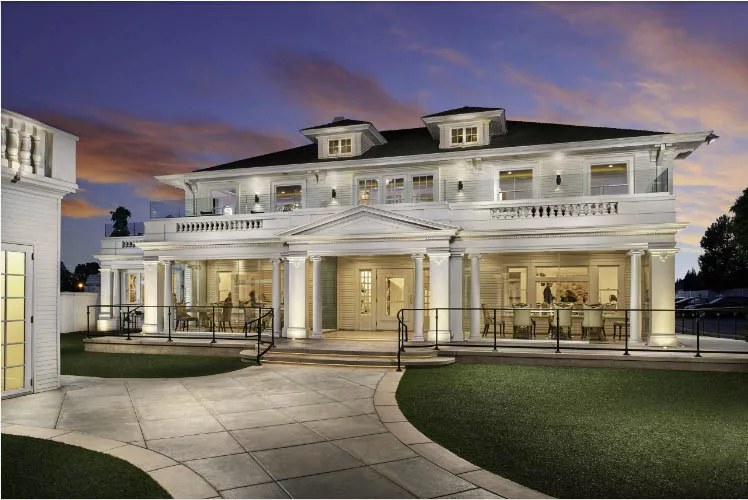 A known project by La Placa Development is the Anaheim White House Italian Steak House which was completed in 2018. The two-story historic home is located in Orange County with a hipped roof and shingle roofing. The exterior features ionic Roman pillars and a spacious front lawn.